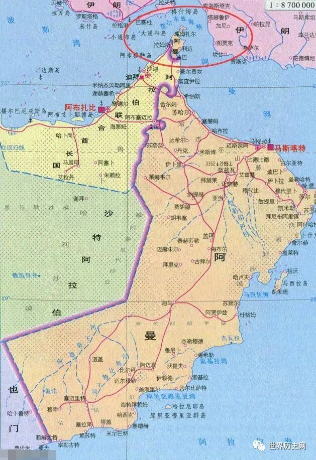 此外,阿曼还扼守着世界上最重要的石油输出通道:波斯湾和阿曼湾之间的霍尔姆兹海峡。这里是全球最繁忙的水道之一,被称为“世界咽喉”。每天,有400万吨的石油通过这里运往世界各地,约占世界石油出口量的三分之一。