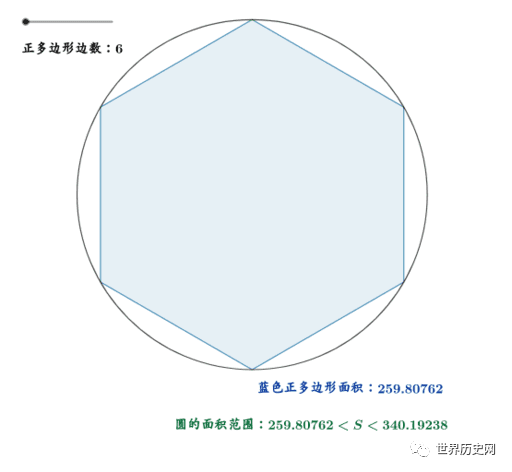 在我国,跟圆周率的缘分要追溯到公元前263年,数学家数学家刘徽用“割圆术”计算圆周率。他通过圆内接正六边形,逐次分割一直算到圆内接正192边形。并且他给出了π=3.141024的圆周率近似值。可是后来他将这个数值与晋武库中汉王莽时代制造的铜制体积度量衡标准嘉量斛的直径和容积进行了检验,发现这个3.14的近似数值还是偏小。于是他继续割圆到1536边形,求出3072边形的面积,得到令自己满意的圆周率。
