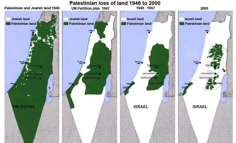 如今,巴勒斯坦的土地支离破碎,比起当年联合国分治方案中的“阿拉伯国”,面积剩下当初的五分之一甚至更小,只是一些互不相连的城镇,而且没有完全主权,处处受以色列限制。生活在巴勒斯坦地区阿拉伯人很贫困,而生活在以色列国家巴勒斯坦人很安康,今后最有可能的方式就是,在以色列国家内部就一个高度自治的巴勒斯坦国,国际社会承认,而以色列吧不承认,但这个巴勒斯坦既没有领土,也没有军队,更没有司法,海关。就是说变相的梵蒂冈。