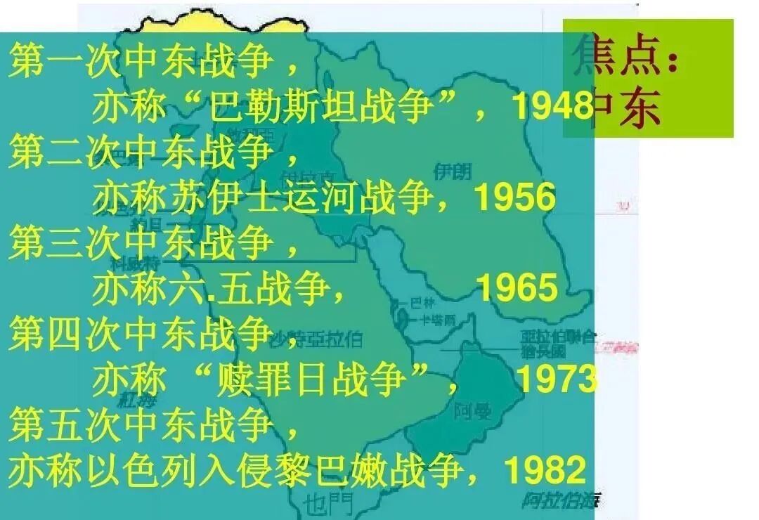 以色列宣布建国的次日,埃及、伊拉克、叙利亚、约旦、黎巴嫩等周边所有的阿拉伯国家一同向以色列宣战,结果战败。
