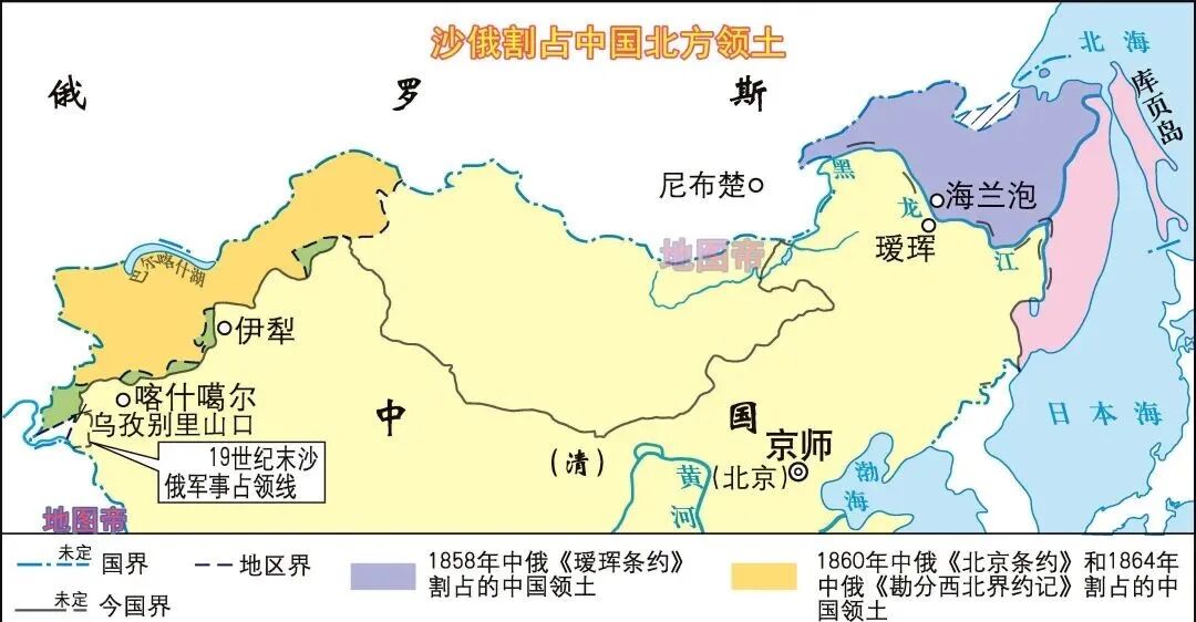 沙俄的第一目标是哈萨克的三个汗国,哈萨克汗国分为大玉兹(大帐)、中玉兹(中帐)、小玉兹(小帐)。大玉兹位于巴尔喀什湖以南,地处楚河、伊犁河及塔拉斯河流域,多为乌孙后人。中玉兹位于巴尔喀什湖以北,主要是哈萨克丘陵一带。小玉兹东与中玉兹接壤,西至里海,南至咸海。