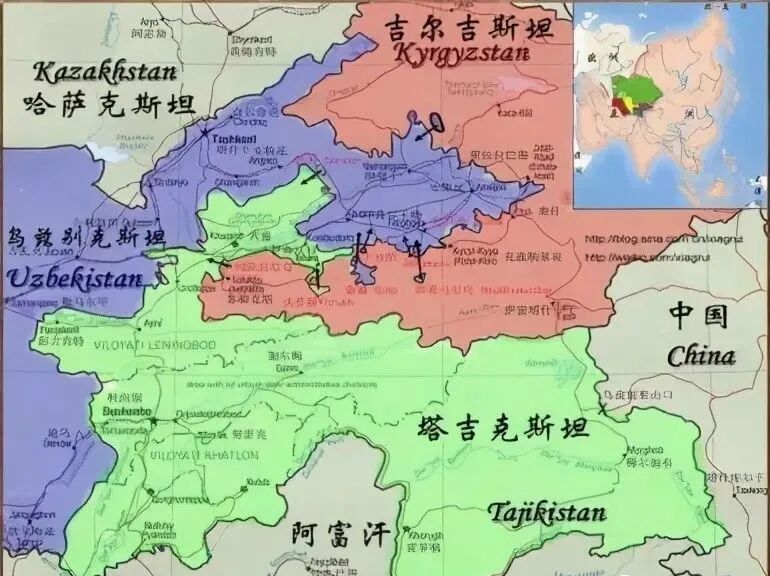 乌兹别克、吉尔吉斯、塔吉克三国各占有一部分费尔干纳盆地。不过,由于几百年的混居造成各族之间的边界很难完全厘清。在强有力的苏联政府干预下,几个共和国的划界还算顺利。也就是说,作为国家(加盟共和国也算)的历史不足一百年,是在苏联时期才形成的。