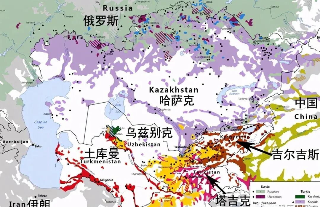 ▲中亚的民族分布,可以看出费尔干纳盆地人口密集,民族成分复杂