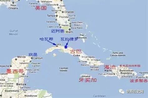 古巴是一个位于加勒比海的岛国,处在大西洋和美洲大陆以及北美洲与南美洲的交汇点上,地理位置十分重要,最近处距离美国佛罗里达半岛仅仅90 海里。