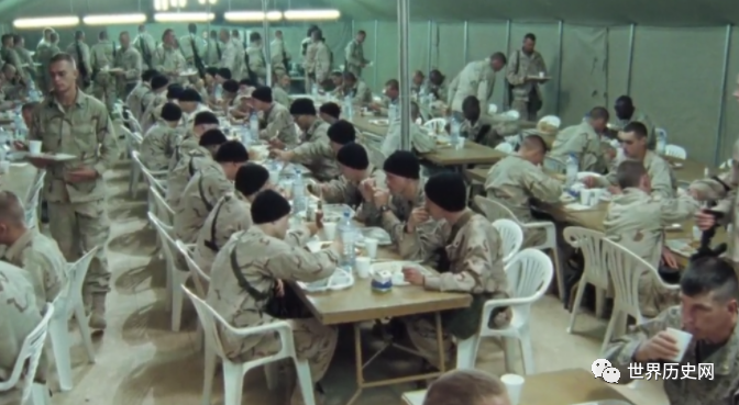 根据美国战地记者发布的视频来看,当时处在2003年的美军军粮里不但有牛奶面包和必备的培根牛肉罐头等肉类补给,甚至在后方的自助区里还会出现可口可乐!