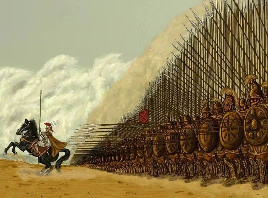 提到亚历山大,就不得不提马其顿方阵,这是一种军队编制起来的战阵,史书上是这样记载的: