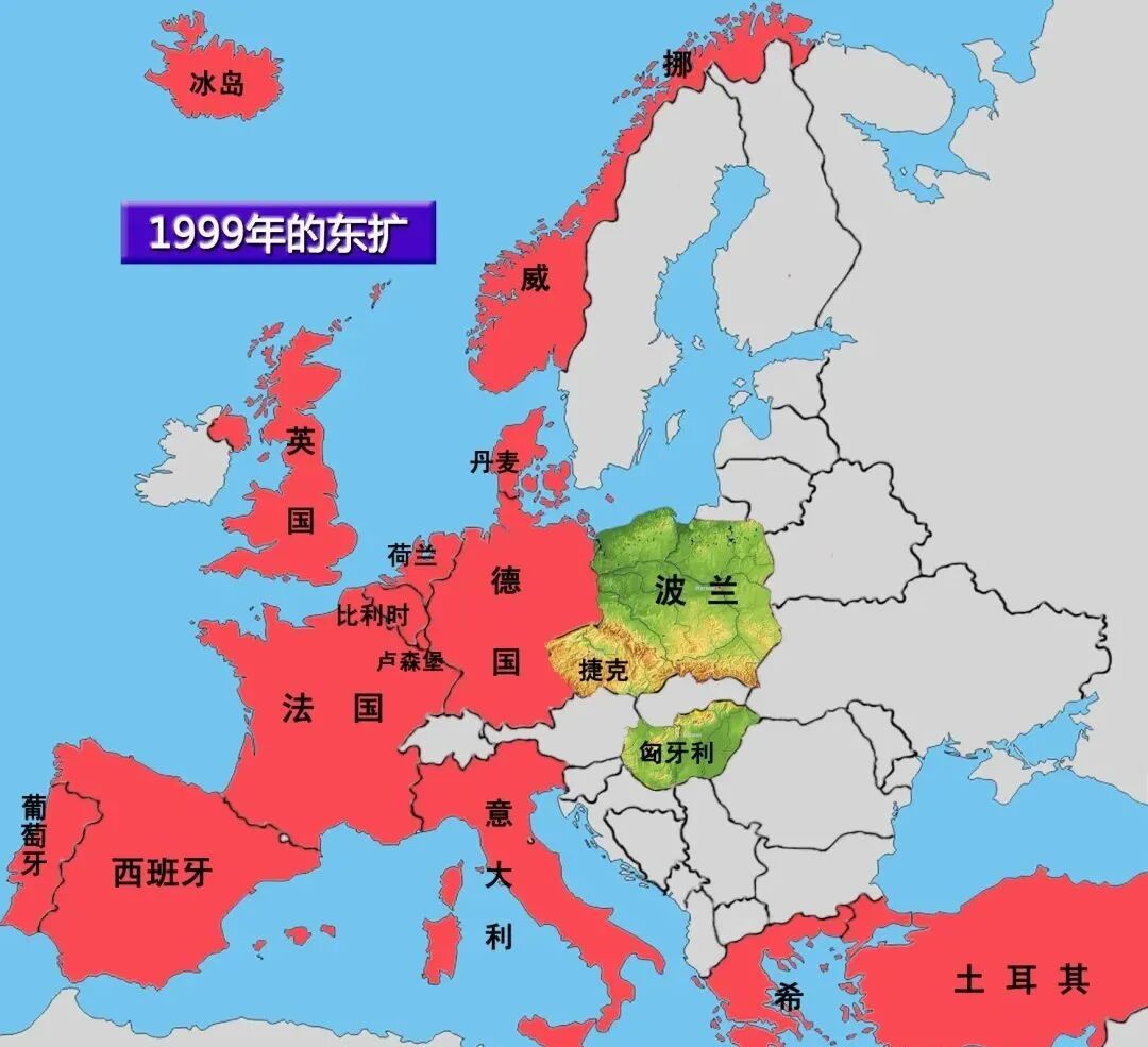 其实此轮东扩是获得俄罗斯默许的,其希望以同意波兰、捷克和匈牙利加入北约为条件,换取北约同意签署使双方关系得以稳定的条约。