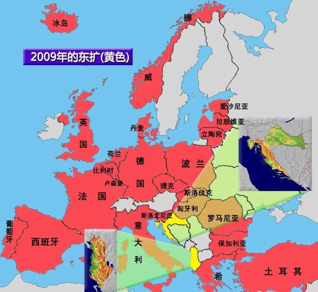 但北约吸纳新成员国的初衷并未改变,因为他们要填补苏联解体后中东欧地区的安全真空,挤压俄国的势力范围。可以说,俄罗斯的策略调整,无形中增大了北约再次东扩的胃口。2004年,波罗的海三国和保加利亚、罗马尼亚、斯洛伐克以及斯洛文尼亚共七国加入北约。北约成员国增至26个,势力范围已直接威胁到俄国军事重镇圣彼得堡,且实现对黑海的“C”形环绕。此时俄罗斯似乎明白了,他是不可能融入欧洲大家庭的,西方仍将之视作异己力量。