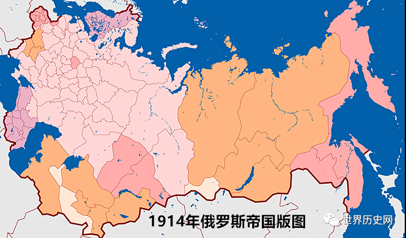 沙皇俄国成立后,更是开启了强力扩张模式。从1547年沙皇俄国形成到1917年二月革命推翻俄罗斯帝国,沙俄在欧洲(东欧)、外高加索地区、中亚、西伯利亚、远东等地攫取了大量土地,征服了多达100多个民族,版图扩大到了原来的八倍。在1895年,俄罗斯帝国全盛时期的疆域达到了2280万平方公里,前苏联的面积约为2240万平方公里。