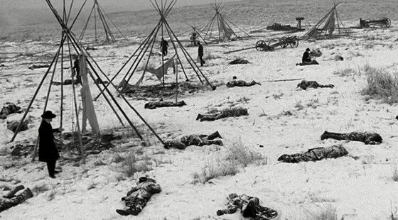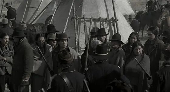 1890年,伤膝谷之战爆发,压抑已久的印第安人在美国政府的步步紧逼中,进行了印第安人最后一次有组织的抵抗。怎奈寡不敌众,印第安人选择投降并上缴武器,在交出全部武器后,美国人依旧强制搜查部落,因沟通不畅导致走火。早已等待这一刻的美国人开始进行无差别射击,300多名印第安人被屠杀,其中半数为妇女儿童。