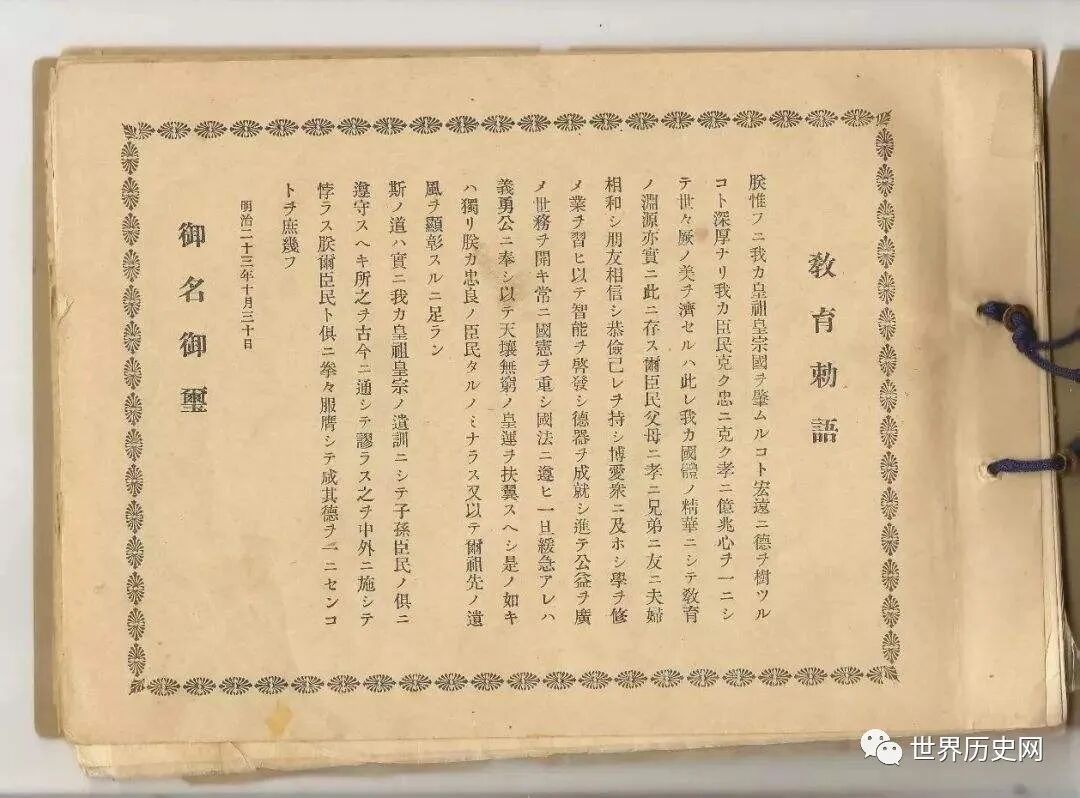 那时的日本为了让国民从小养成对天皇顶礼膜拜的意识就规定:学校在正式上课以前全体师生必须向天皇的照片鞠躬行礼并背诵天皇颁布的《教育敕语》。这样一来每个日本孩子一入学首先接触到的就是关于天皇崇拜的宣传。所谓“皇国正统万世一系”在当时的日本是不容置疑的政治正确。