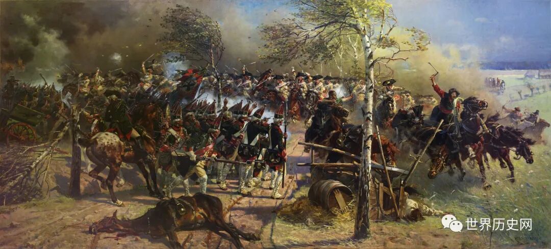 1756~1763年,爆发了温斯顿·丘吉尔所说的人类历史上的“第一次世界大战”,即著名的七年战争。在欧洲陆地战场上,弗里德里希二世率领的铁血普军双线作战,西线抵抗强大的法国,东线则面对俄奥联军。