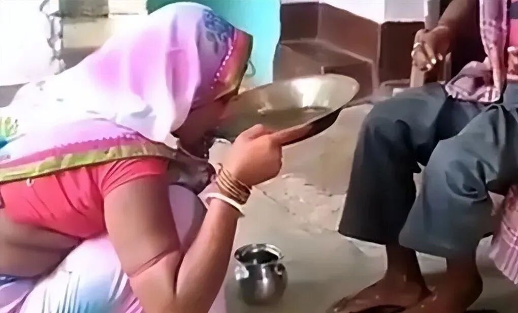 那么这和喝洗脚水有什么关系,在印度,水妻每月例假结束后第一天,水妻按照习俗要给男人洗脚,然后喝掉洗脚的水,不为别的就是为了表面忠诚。这可真的太非人的待遇了。