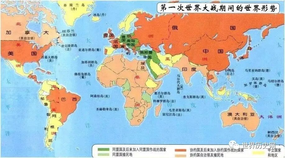 第一次世界大战,简单明了地说就是德国、奥匈帝国等新兴列强与英国、法国、俄罗斯等老牌列强为争夺全球殖民地的控制权而爆发的战争。