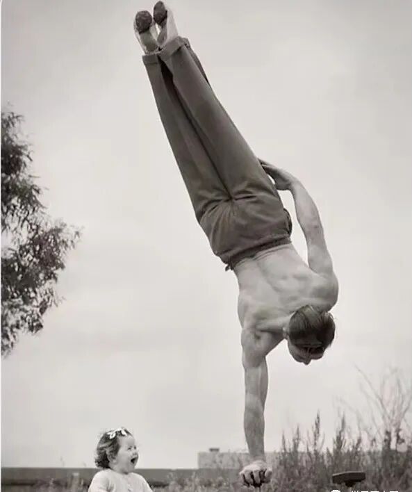 图八:单手倒立的父亲(拍摄于40年代澳大利亚的墨尔本)