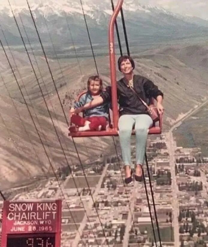 看到这张照片,不得不对这缆车的安全措施产生怀疑,请问这样的缆车你敢坐吗?这位母亲居然还如此兴高采烈地带着女儿坐。