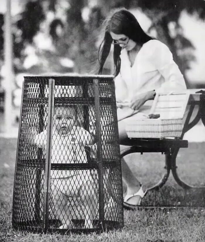 这还真是带娃儿有奇招,年轻的母亲为了专心地做编织,干脆找个垃圾桶来替她看娃,可爱的宝宝居然已经习以为常,看来已经不是第一次了。