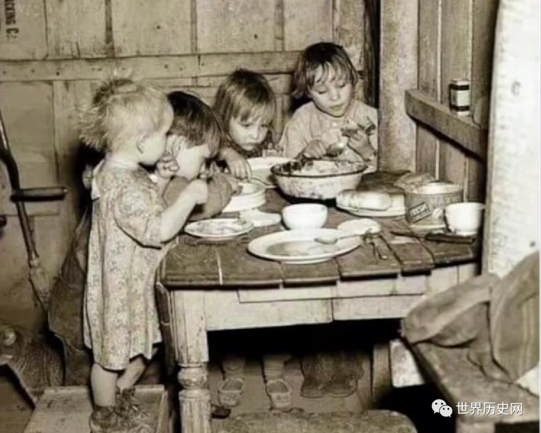 桌上的四个孩子正全神贯注地吃着他们的晚餐,虽然餐桌上没有太多的食物。不由地想起小时候,物资虽然缺乏,但是每次上饭桌都很开心,不管吃什么都意犹未尽。