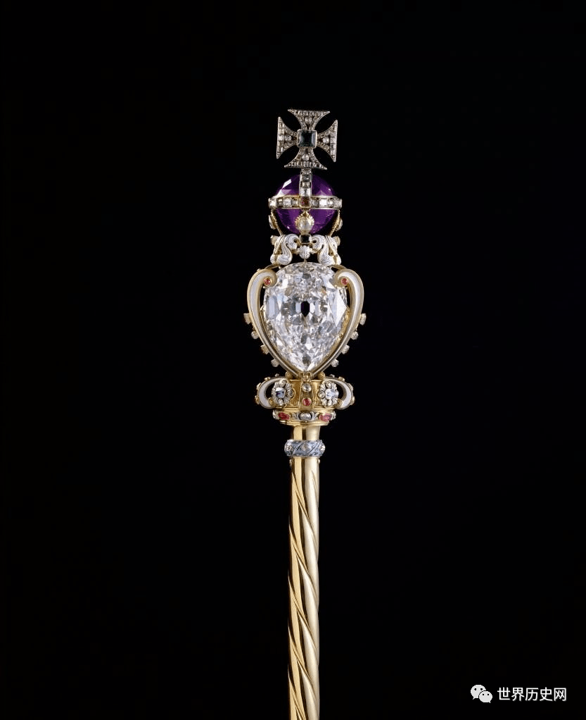 英国王室从1600年前就开始通过各种手段搜刮世界上的珍宝,其中国王或者女王头戴的王冠和手持的权杖则是最顶级珠宝的汇聚地。每次亮相都成为全球瞩目的焦点。权杖上2444颗钻石以及530.02克拉的“非洲之星”。王冠上共镶有4粒红宝石,11粒祖母绿,16粒蓝宝石,227粒珍珠和超过2800粒大大小小的钻石,包括重317.4克拉的“库里南2号”。(非洲之星,库里南2号,两颗钻石的原料钻石就价值75亿美元)