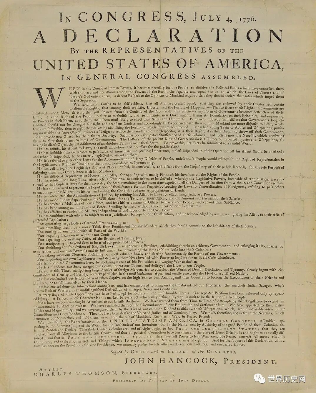首先,它签订的1776年7月4日。