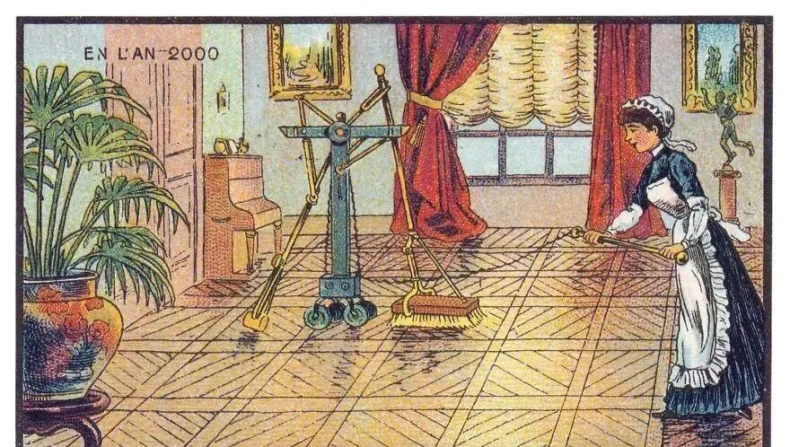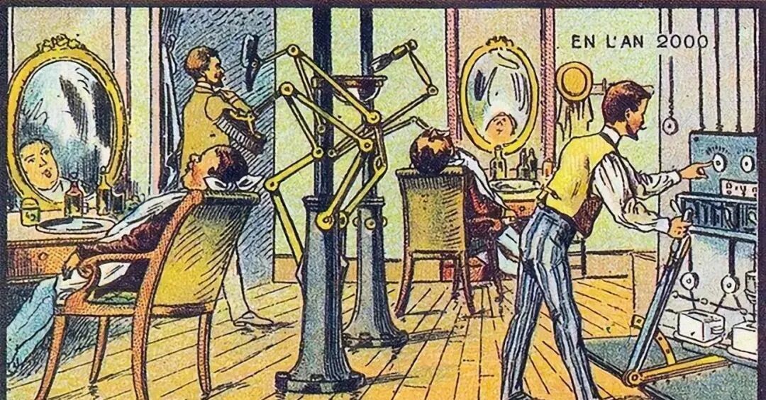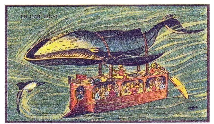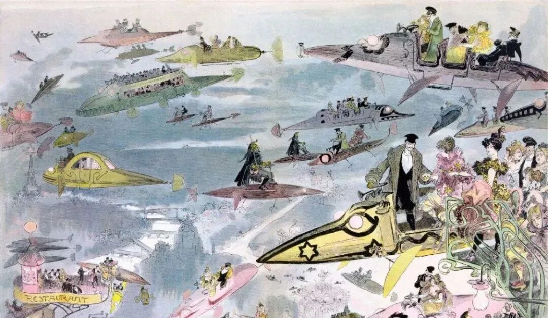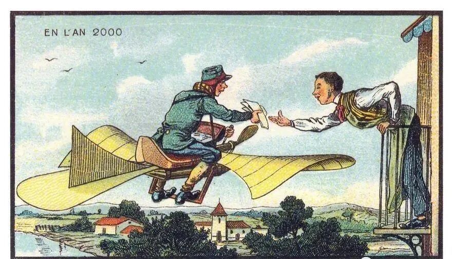 下面就是一组1900年代在欧洲发行的明信片,内容是一些艺术家关于100年后的世界的预测。那个年代莱特兄弟才刚发明飞机,电视、互联网、手机都还未面世,生活的方方面面都和现在的我们有着巨大的差异,下面就让我们一起来看看他们是如何预测的吧: