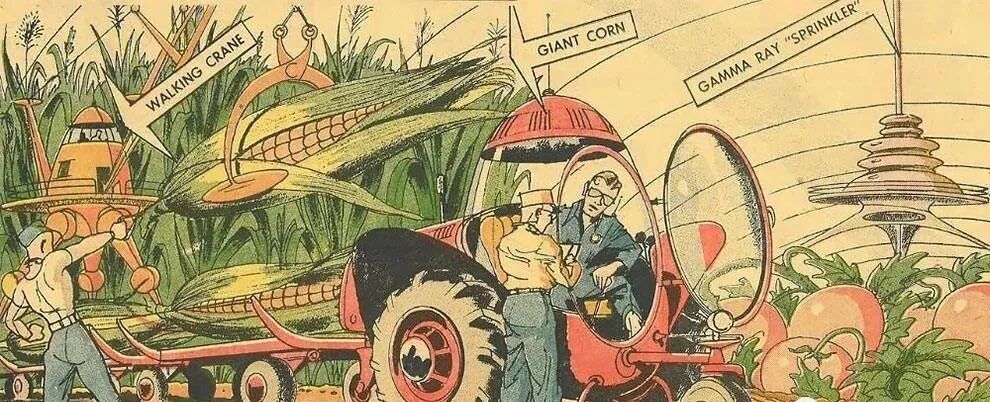 巨型农作物。没想到欧洲人也有在穗下乘凉的梦想,虽然在科技的帮助下现在农作物的产量比以前提高了很多,产量也更稳定,但是恐怕还远远达不到图片中的模样。