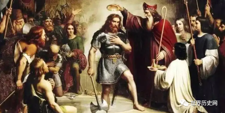 日耳曼人通过武力征服罗马帝国,但却是文化上的荒漠,需要教会所掌握的文化与知识。所以,法兰克国王克洛维一世皈依基督教,从此中世纪的欧洲开始了神学政治。法兰克王国,也就成了中世纪西欧第一个政教合一的国家。