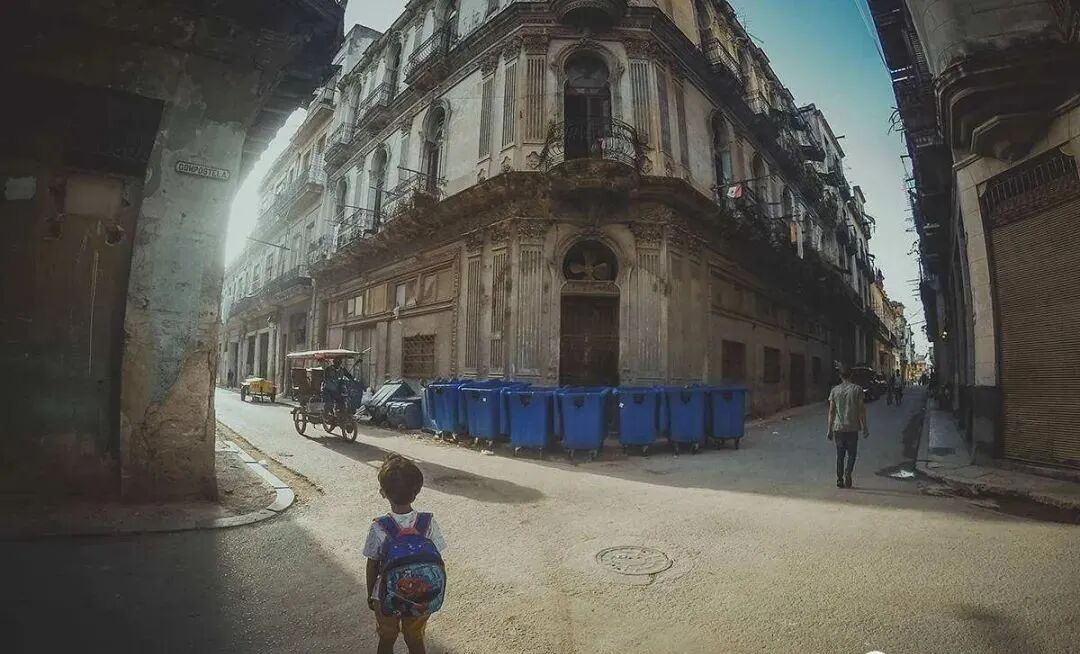 古巴哈瓦那街头,21世纪的今天,古巴仍有很多这种旧时代的危楼