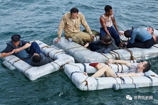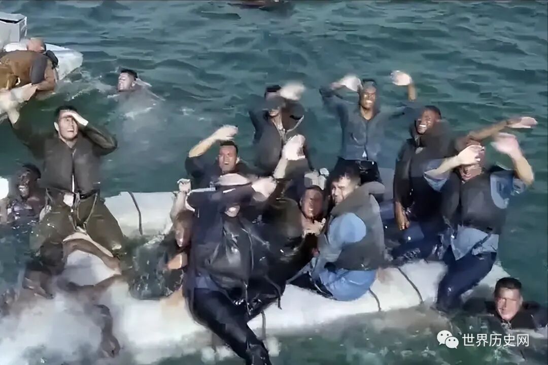 当这九百名士兵坐在船筏上以为万无一失的时候,这些鲨鱼开始撕咬救生筏,并将救生筏掀翻,而可怜的美国士兵就成为了鲨鱼的晚餐,此时的海面已经是一幅人间地狱的景象。
