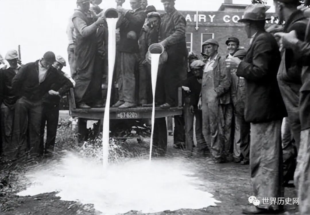 20世纪30年代的经济大萧条期间世界工业生产总额缩减了36%、世界贸易额缩减近2/3。在此期间全球失业工人总数达到3000多万、几百万小农破产、上万家银行倒闭。与金融危机和工业危机相伴随的是深刻的农业危机:农产品大量过剩导致农产品价格暴跌。光是在美国就有成吨的牛奶被倒进密西西比河,还有大量小麦、玉米代替煤炭作为燃料,与此同时广大的失业者群体却生活在饥寒交迫之中。