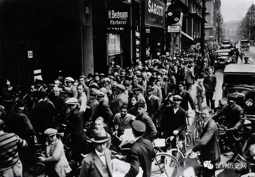 德国在这场经济危机中所受到的冲击比美、英、法等国更大:德国作为第一次世界大战的战败国背负了高达1320亿金马克的战争赔款(不含利息)。1922年以后德国实际上就已处于一种慢性通胀的状态,到了1929年德国还没得及从本国的通胀中缓过劲来就又遇上世界性的经济大萧条。长期的滥发纸币导致德国货币贬值物价飞涨。通胀最严重的时候一个面包的售价高达一万亿马克。