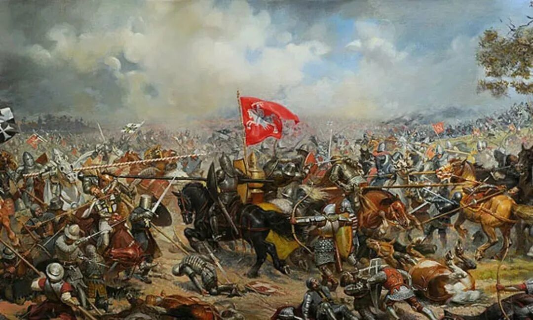波兰人与邻国立陶宛达成了盟约,巩固了克雷沃联盟。1410年,条顿骑士团与波兰爆发了战争,立陶宛支持波兰。他们一起在格伦瓦尔战役中击败了条顿骑士团,从而阻止了其向东方扩张的脚步。顺便说一句,现在的立陶宛虽然领土很小,但当时立陶宛可是一个非常强大的国家,甚至有成为帝国的潜力。立陶宛和波兰的联盟还曾占领了南部的很多领土(在现今的乌克兰境内)。这也是波兰觉得乌克兰西部属于自己的原因。