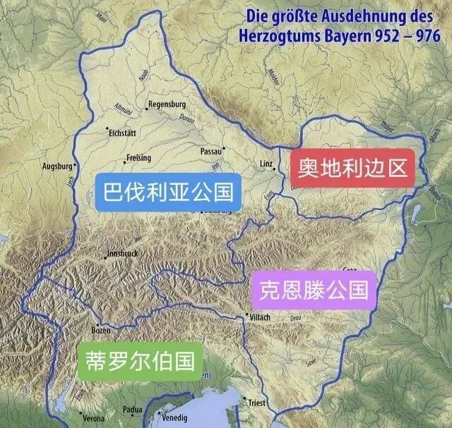 其中,巴伐利亚的东南部地区被单独划出来建立了奥地利边区,并被奥托二世封给了因为在“巴本堡之争”中失去领地的巴本堡家族作为世袭领地。