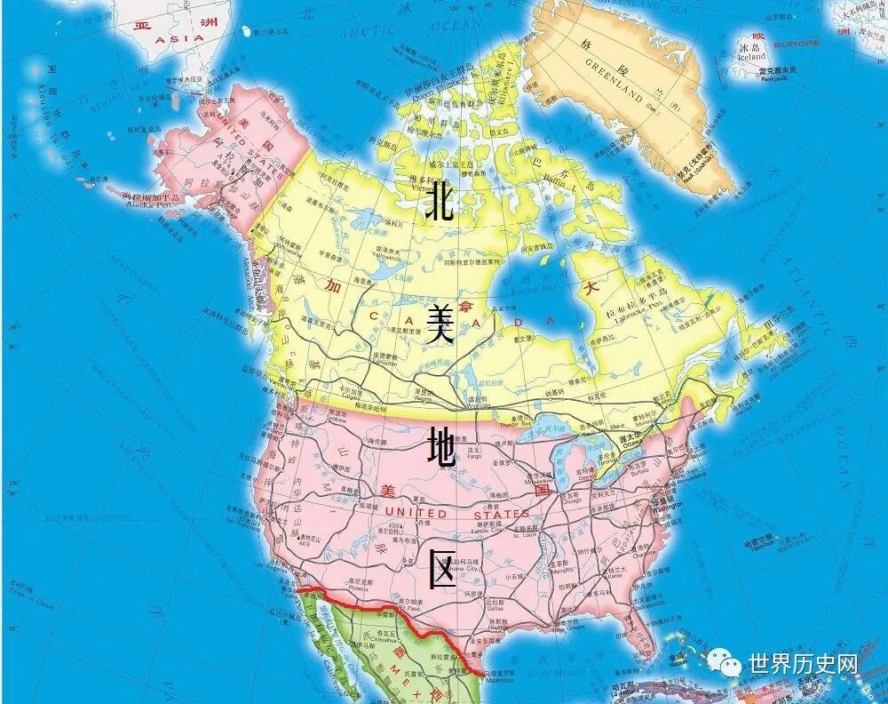 美洲根据社会经济发展程度和政治地理学,又可以划分为北美和拉丁美洲两部分。北美,又称北美地区,主要是指美国和加拿大两个国家,这两个国家是美洲地区仅有的发达国家,人文发展指数很高,两国之间同根同源,一体化程度很高。