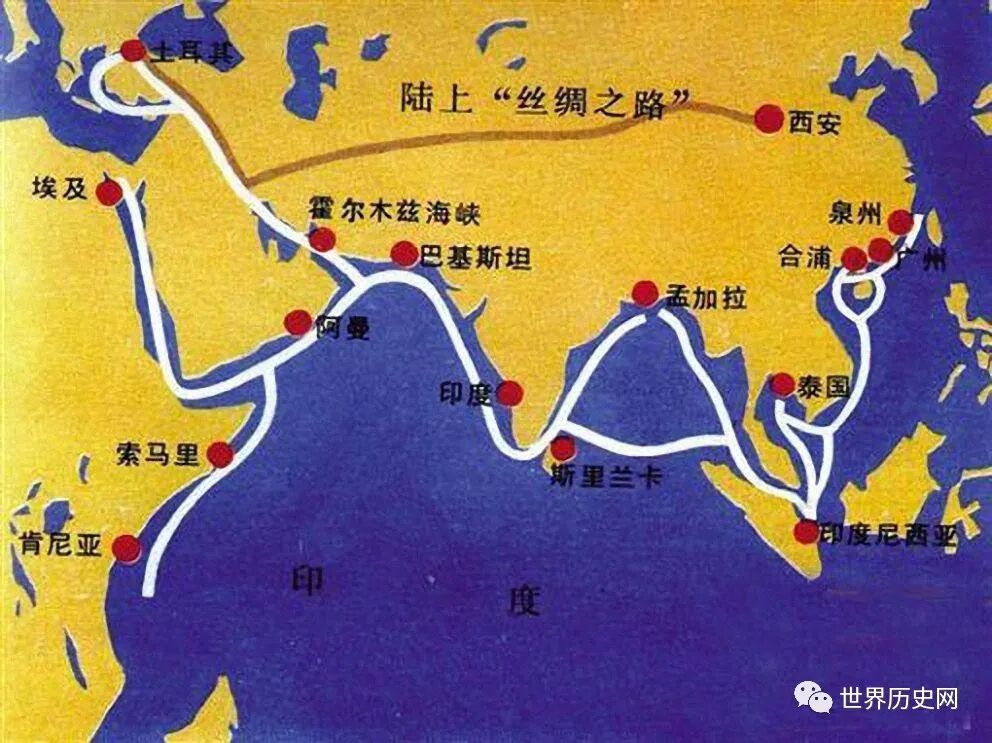 从唐代到元代,中国通向西亚的海上丝绸之路,主要由阿拉伯人与波斯人经营。也许我们有许多人不愿意承认:中国人从事海上贸易,主要是受他们的启发。我们知道:贸易与宗教是驱使人们航海的最大动因,没有这些动力,很少人愿意跨洋远航到异国,因此,从海上丝绸之路主要由来自西亚与中亚的商人控制,而且由中亚与西亚的宗教覆盖这一点来看,在中古以前,西亚商人对东方的认识更胜于东方人对西方的认识。