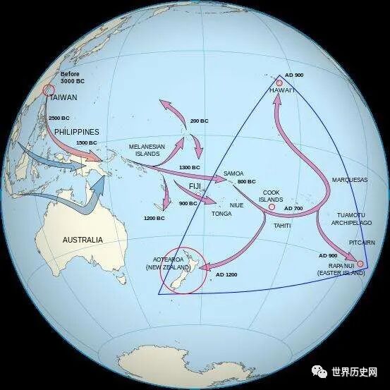 波利尼西亚人驾乘独木舟,跨洋远航。