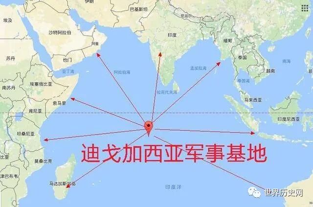 迪戈加西亚岛位于印度洋,查戈斯群岛最大、最南端的珊瑚岛。迪戈加西亚岛的面积有27平方千米,水深足有10——20米,是一个很好的深水港。其地理位置位于整个印度洋的中间位置,东边是马六甲海峡,北边是印度,西北是波斯湾和红海,西边是非洲。迪戈加西亚岛是新加坡、好望角、红海、澳大利亚等各大海上航线的交汇处。