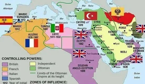 那些曾经在奥斯曼控制之下的中东地区,比如今天的叙利亚、黎巴嫩、巴勒斯坦、伊拉克,还有埃及、利比亚等等,一下子群龙无首,它们散作满天星。奥斯曼帝国的瓦解,是今天中东乱局的根源之一。