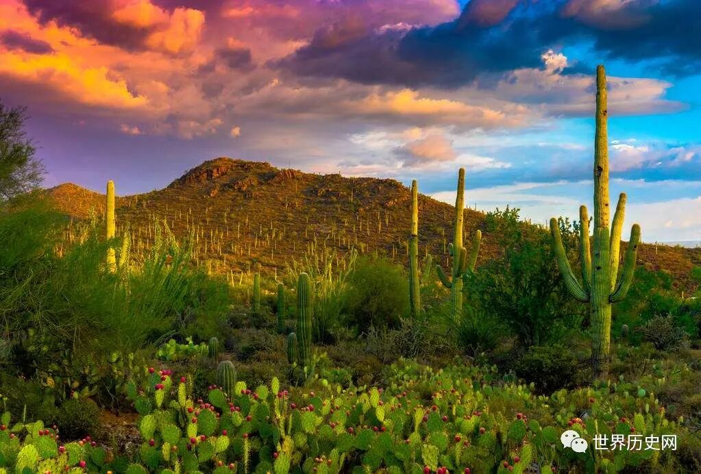 墨西哥北部地区,终年受到副热带高气压带控制,盛行下沉气流,属于终年高温少雨的“热带沙漠气候”,仙人掌是墨西哥最多的植物。