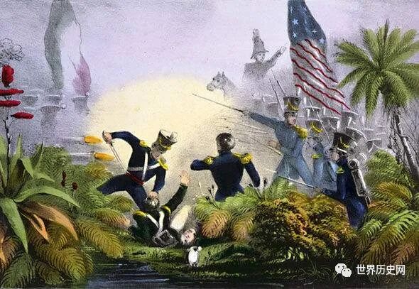 1835年,属于墨西哥的得克萨斯奴隶主发动一场反叛行动,被墨西哥军队平息下来。在战斗中,有187名美军士兵战死。这下不得了,美国立即派遣军队进入得克萨斯,打败了墨西哥军队,并宣布得克萨斯独立。对于美国的挑衅行为,墨西哥不能忍受,在1846年的5月23日向美国宣战。