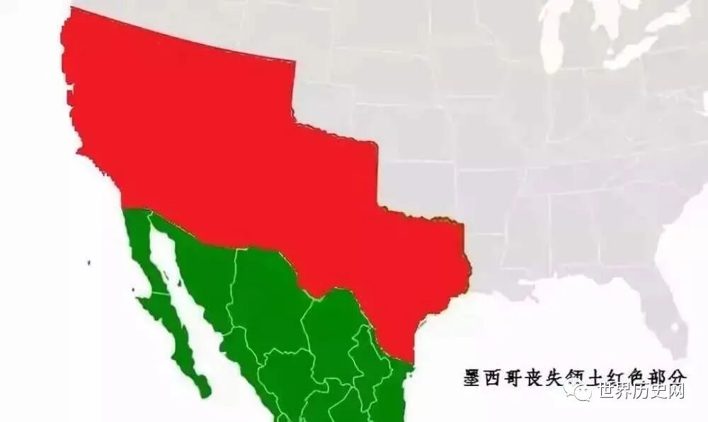 战前,墨西哥的领土面积远远大于美国。在割让了一半以上的领土后,墨西哥成为了一个小国。