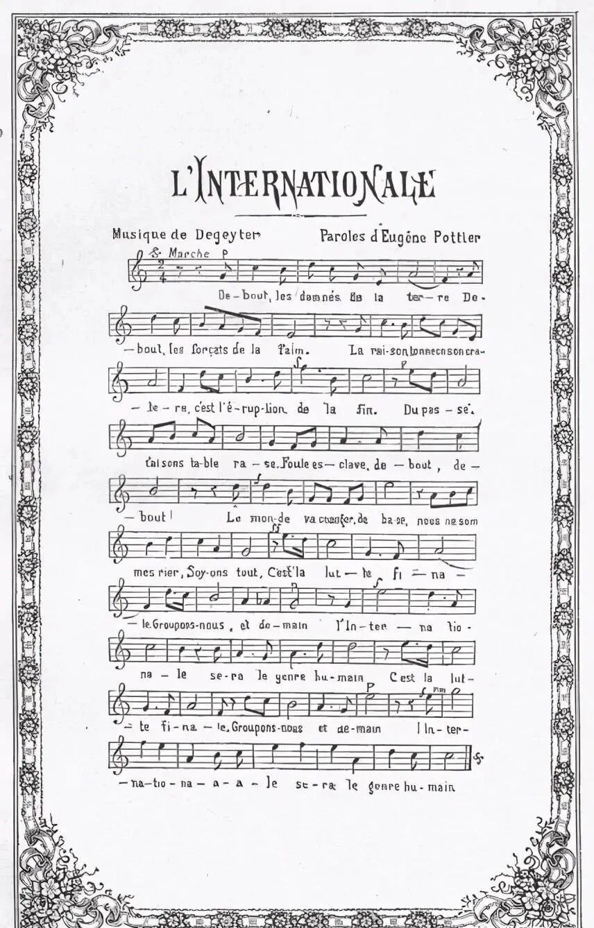 法文原版《国际歌》曲谱及歌词
