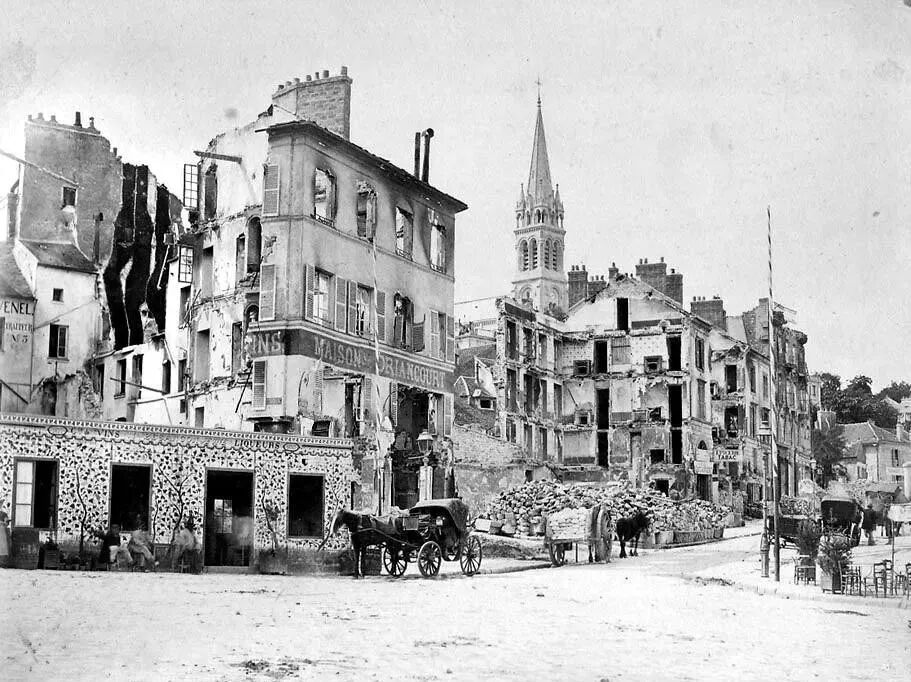 第三共和国成立后不承认拿破仑三世战败后的投降协议,因此普鲁士大军向巴黎进攻,并围困巴黎长达四个月,在这四个月里,巴黎民心疲惫社会不稳。第三共和国最终被迫正式同德国签订停战条款,条款内容与大清向英法俄签订的性质没什么不同,赔款加割地。十年前火烧圆明园的法国人这回却被普鲁士人狠狠的羞辱了一回。