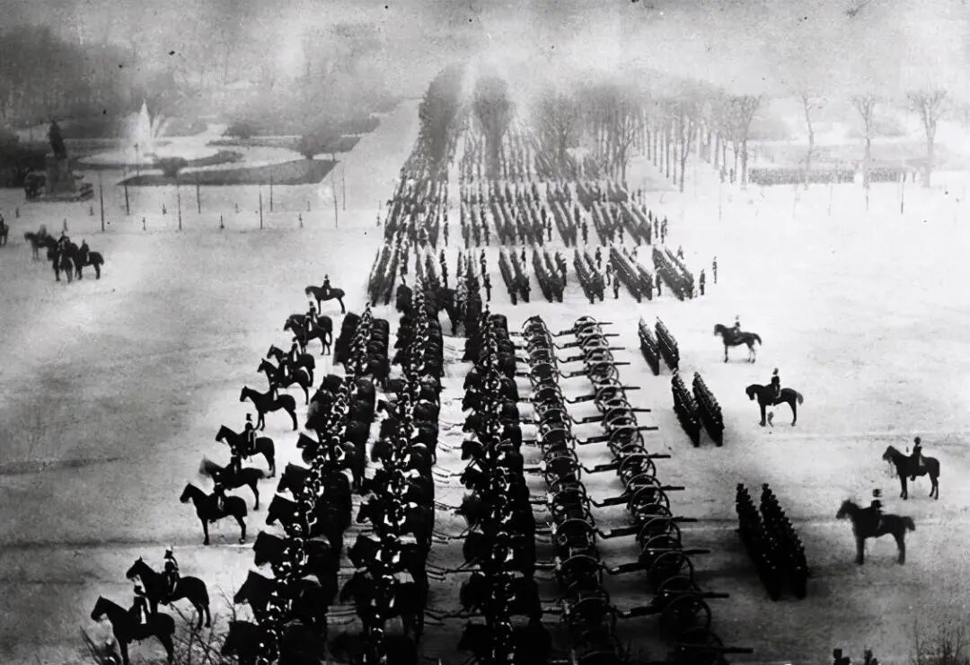 普鲁士军队在巴黎城中阅兵的场景