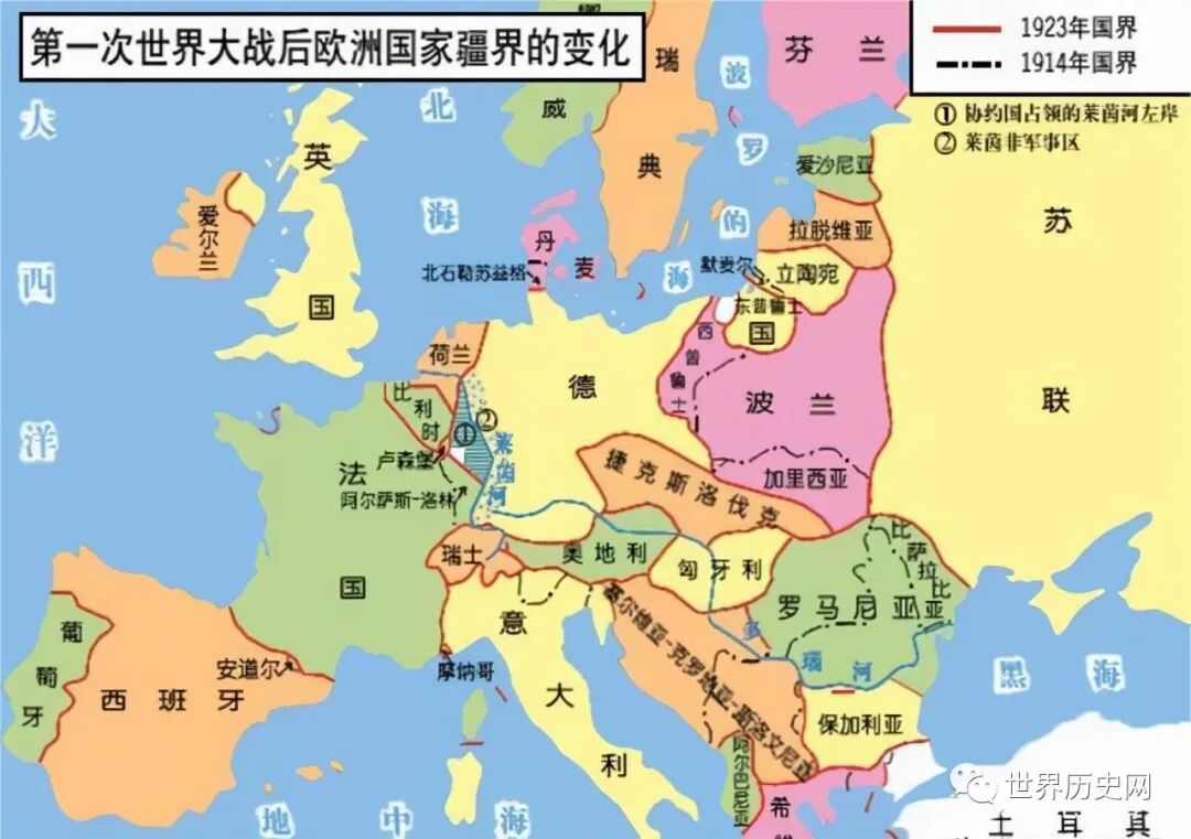同时一战加速了欧洲的分化,欧洲由一战前的18个国家,战后形成了27个国家,多出了9个国家。