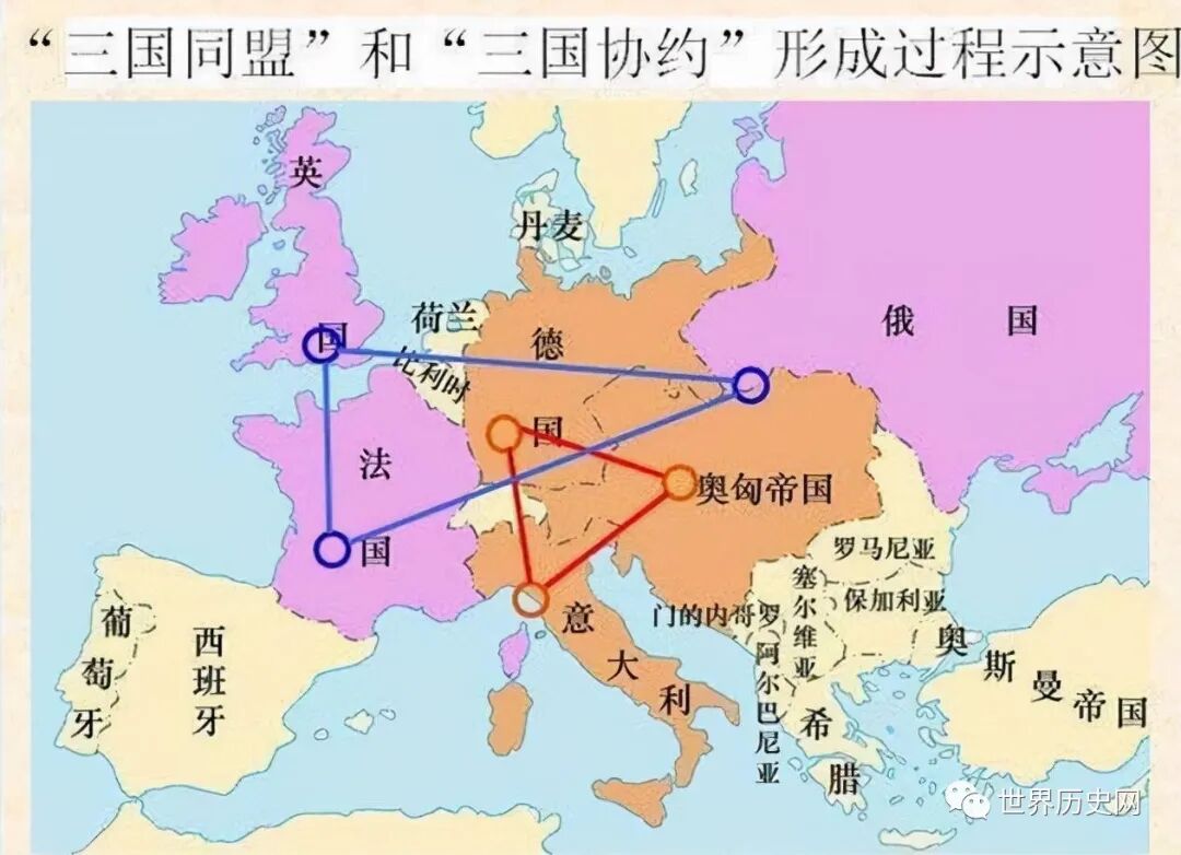 西部是西班牙、葡萄牙;北部是挪威、瑞典、丹麦;西北是英国,东部是俄国;中部和西面是法国、荷兰、比利时、德国、奥匈帝国;南面是意大利、阿尔巴尼亚、塞尔维亚、希腊、罗马尼亚、保加利亚等18个国家。