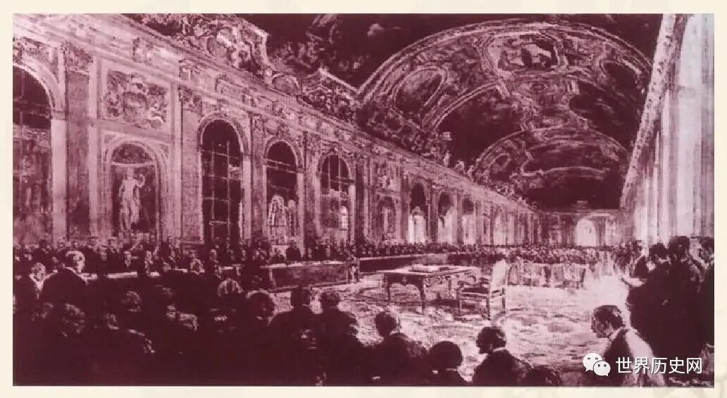一战结束后,参战国在位于法国巴黎的凡尔赛宫举行缔结合约的谈判,分配胜利果实,史称巴黎和会。