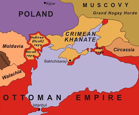 克里米亚汗国在并入俄罗斯帝国之前,克里米亚鞑靼人受到奥斯曼帝国的影响,同时也与日益咄咄逼人的俄罗斯帝国接壤。1774年,继俄土战争俄国和奥斯曼帝国签订条约。1783年,随着奥斯曼帝国的日益衰落,俄罗斯帝国吞并克里米亚汗国。