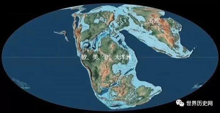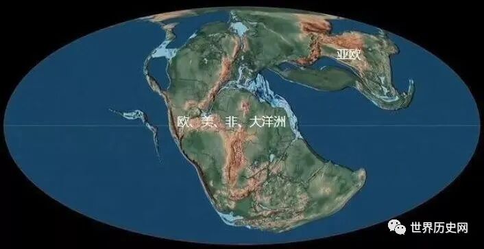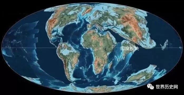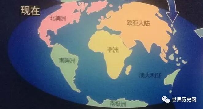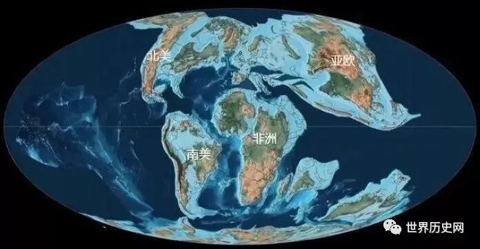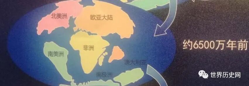 大洋洲、印度、美洲,开始逐渐从非洲分裂开来,向四周移动。同时,亚欧大陆除了印度基本合并到了一块儿。