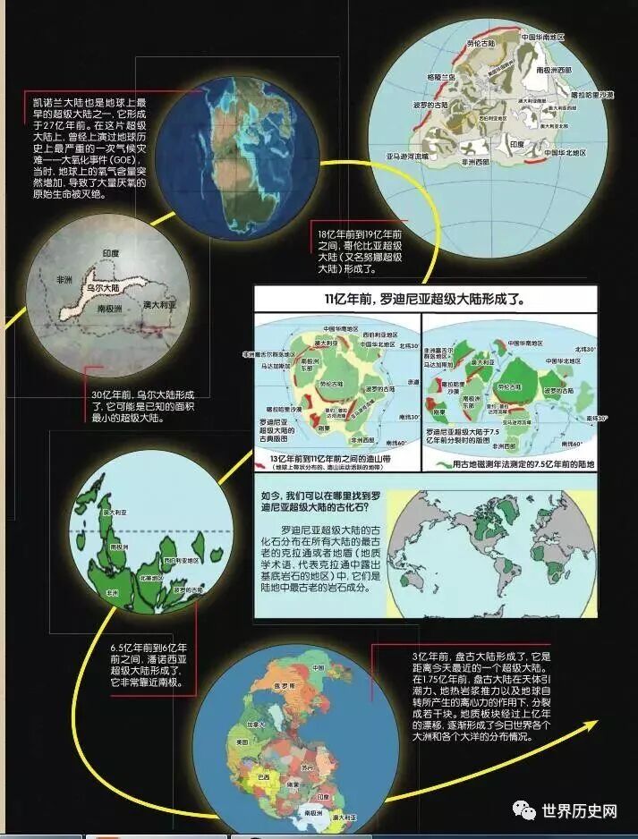 最早的大陆形成于地球的中部和南部,北半球很少。此时,很难看出地球现在的样子,不过,笔侠还是根据其变化过程,将最早的亚欧大陆雏形画了出来。看到了吧?实在令人难以想象。